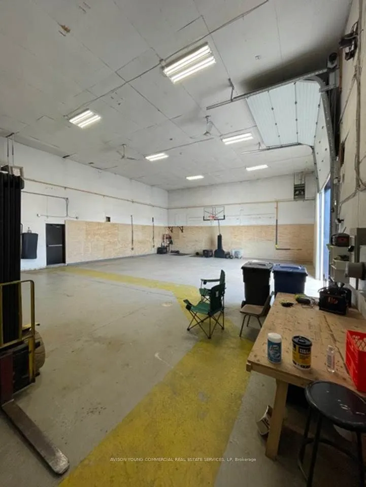 Functional 20 clear warehouse space (18 to ceiling fans). Excess parking and land available, with fenced and secured parking lot. Steps from the Oakville GO station, numerous amenities. Immediate QEW access from Trafalgar. Shared port-a-john on site included with TMI. Clean uses only (no automotive).