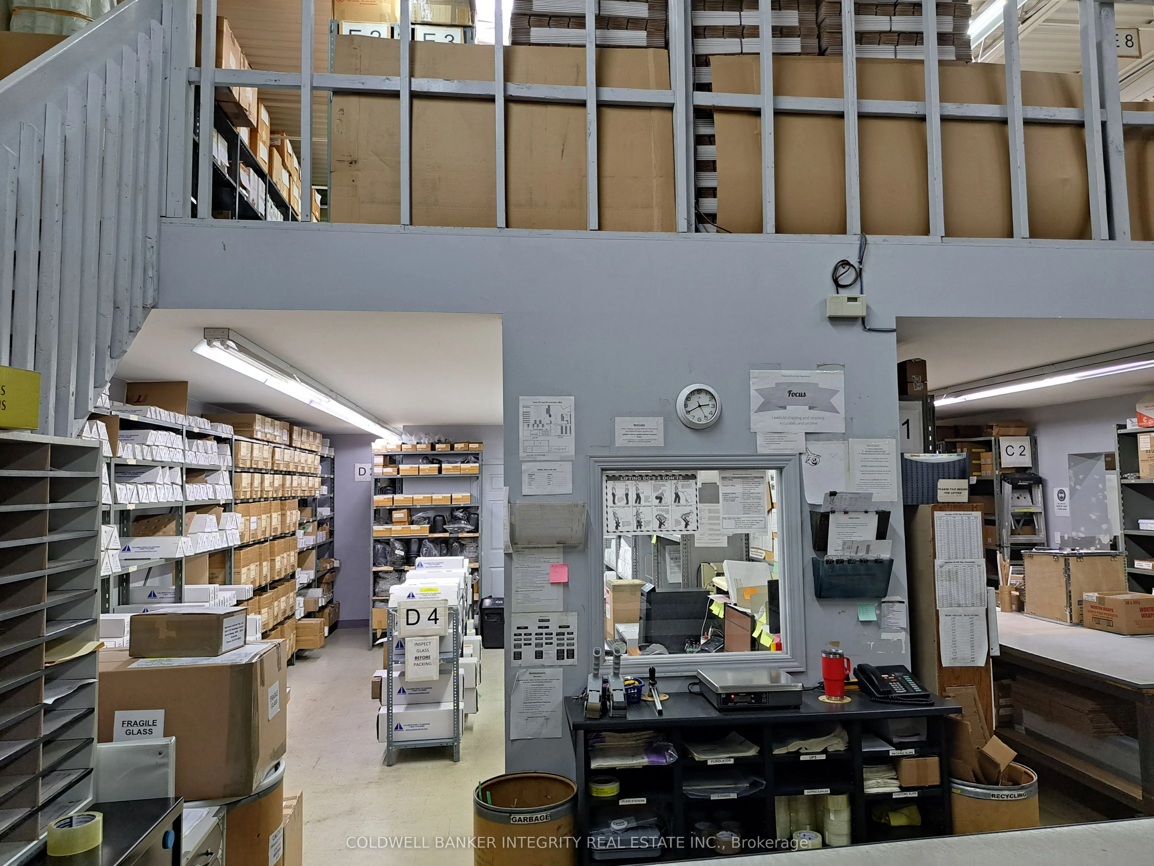 Industrial condo building comprising 4 separately demised units with internal access to all units – all have separate services and shipping – use all the space, or lease out units until needed for expansion – 3 minutes to Hwy 403 interchange – 5 minute walk to Aldershot Go Train; main floor is 9820 sq ft split 50 / 50 office and warehouse; additional storage mezzanine of 1,786 sq ft not included in building size; all units are fully air conditioned; external security cameras in place; 24 parking spaces; 1 @ 12 ft x 12 ft drive in door; 3 @ 8 ft x 8 ft truck level doors, 2 c/w dock levelers and dock seals; see attached floor plan sketches; lot size is .764 acres; future residential re-development to hi-density is an option; Unit 1 – all office – clear height of 10ft; balance of space mostly 18 ft clear except over front office portions