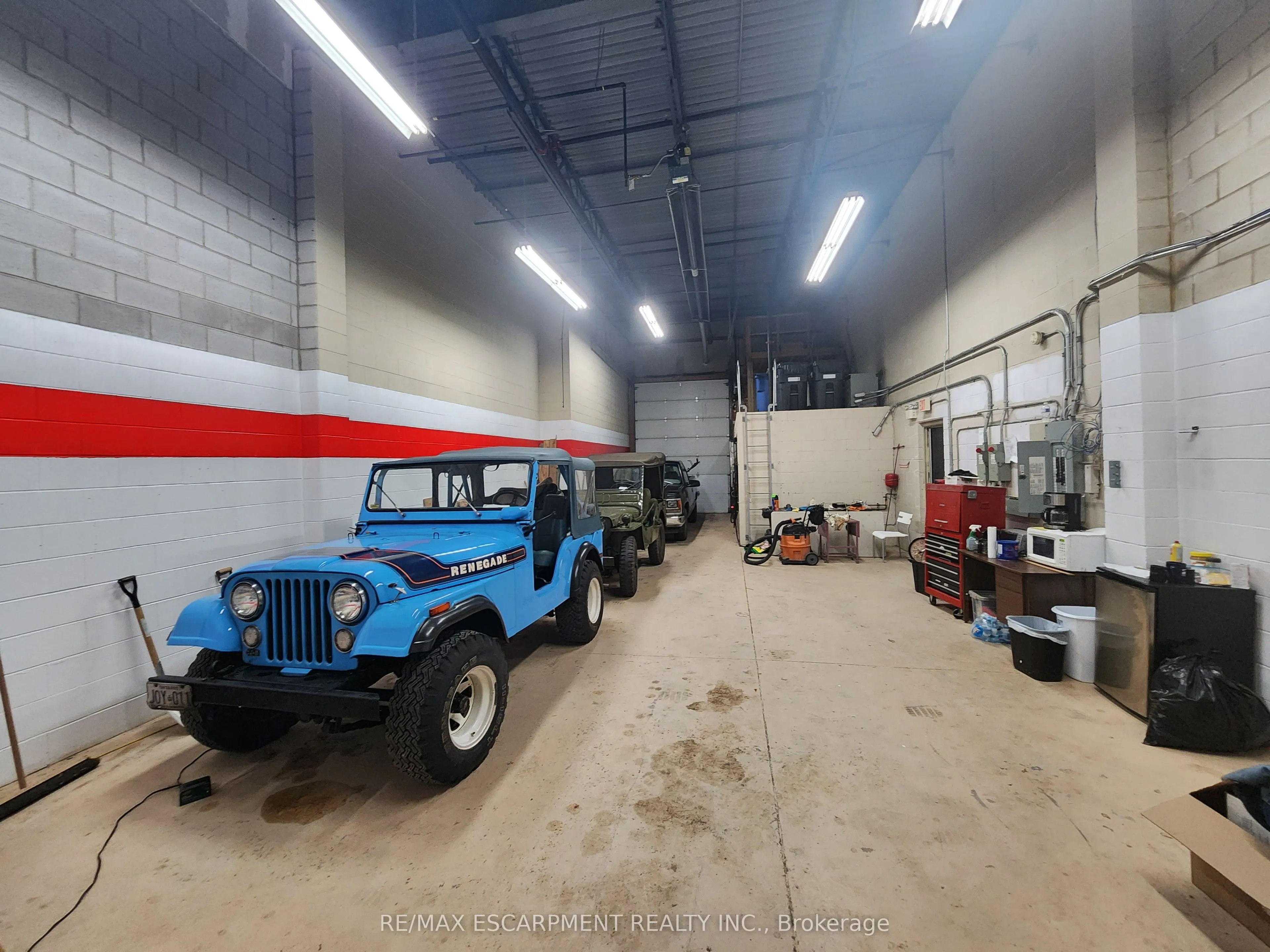 Small bay industrial unit for lease fronting Harvester Road in Burlington. This end unit has great visibility and signage exposure. The unit is currently configured with approximately 1,288 SF of warehouse space and 400 SF of office space, with 18′ clear height and one over-sized drive-in door. An additional 400 SF of mezzanine space is not included in the unit size and included as a bonus. Excellent highway access to QEW/403 via Appleby Line. Conveniently located within minutes of transit (Appleby GO Train Station) and retail amenities. General Employment (GE1) zoning permits a wide range of industrial/ flex uses. Ideally suited for quasi-retail or a contractors establishment. Automotive uses are not permitted.