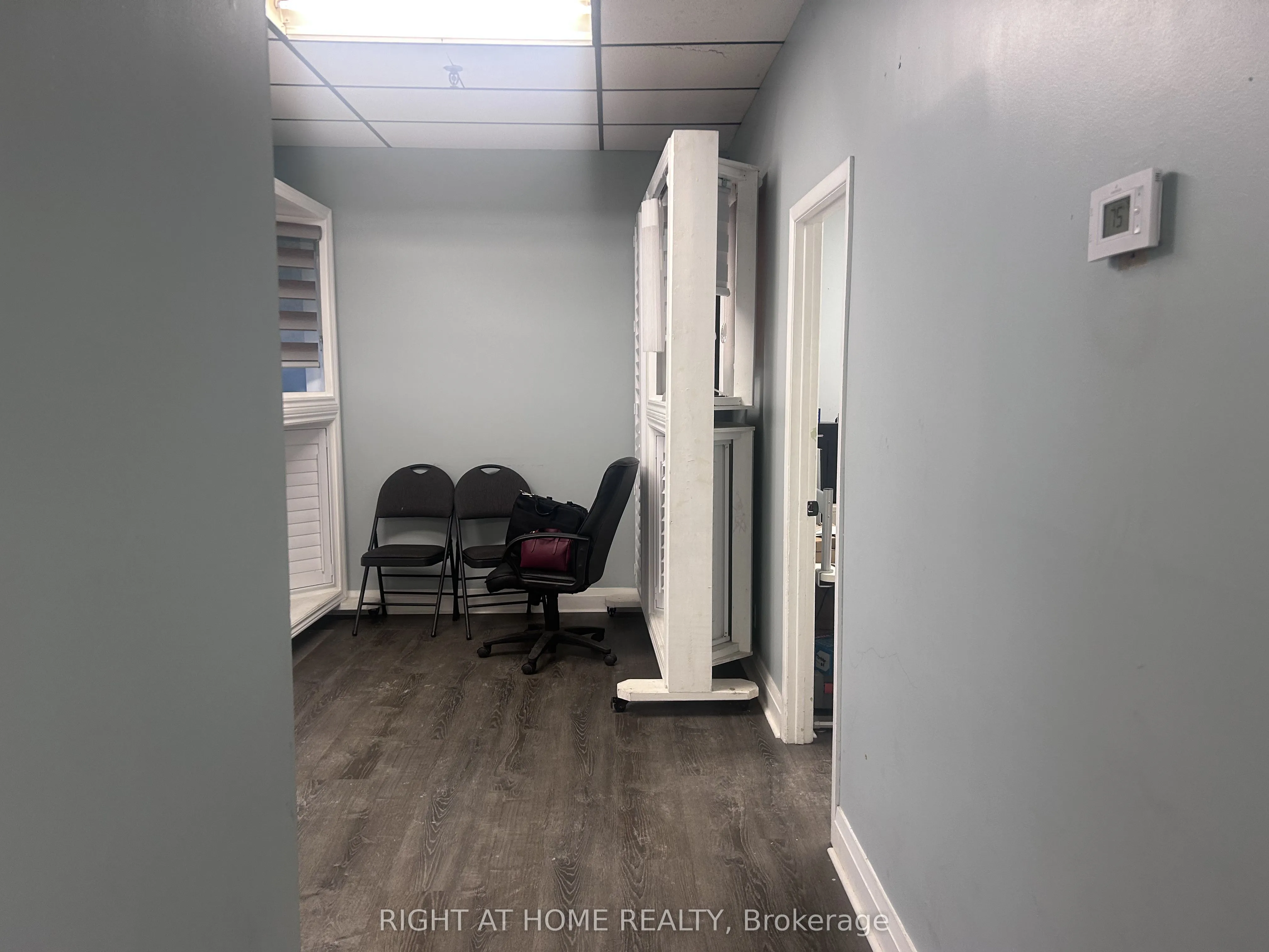 Industrial Warehouse; 7,600 sq ft double unit close proximity to Highway 401. Entrance Airlock, open office area 14′-3″X 14′-4″, Private office 1 – 14′-8″X 9′-10″, Private office 2 – 9′-11″X 8′-11″, large office open area 29′-5″X 24′-0″. Office/lunchroom 9′-11″ X 8′-11″, large open workspace 29′-5″X 24′-0″. The expansive warehouse floor provides an open workspace measuring 81′-8″X 59’5″ offering the ideal footprint for large-scale warehousing or light manufacturing. Shipping and Receiving area with a dual-loading configuation – one truck level door and one drive-in door. Two 2-piece washrooms in warehouse and office area.